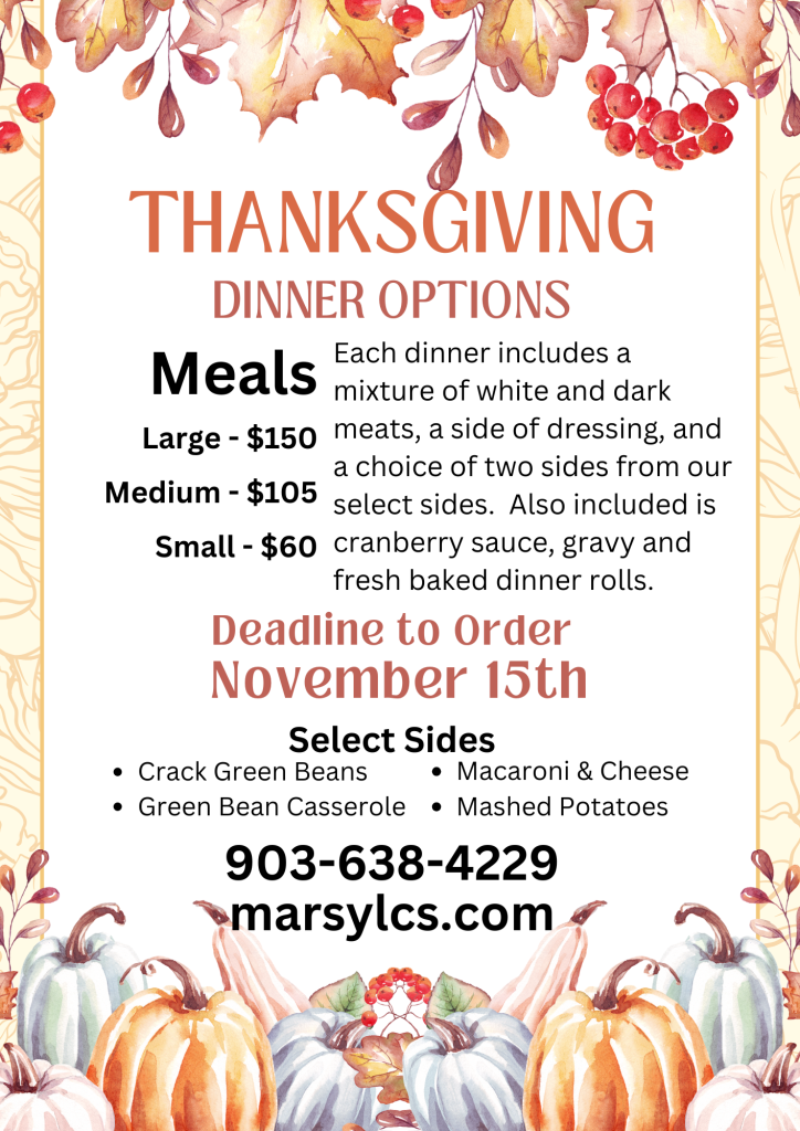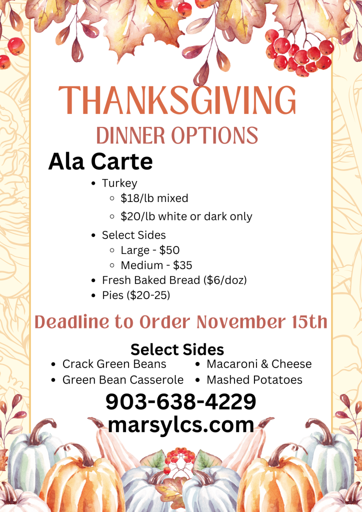 And after you have drooled all over your keyboard while looking at our menus, give us call to let us know what we can have ready for you to pick up!